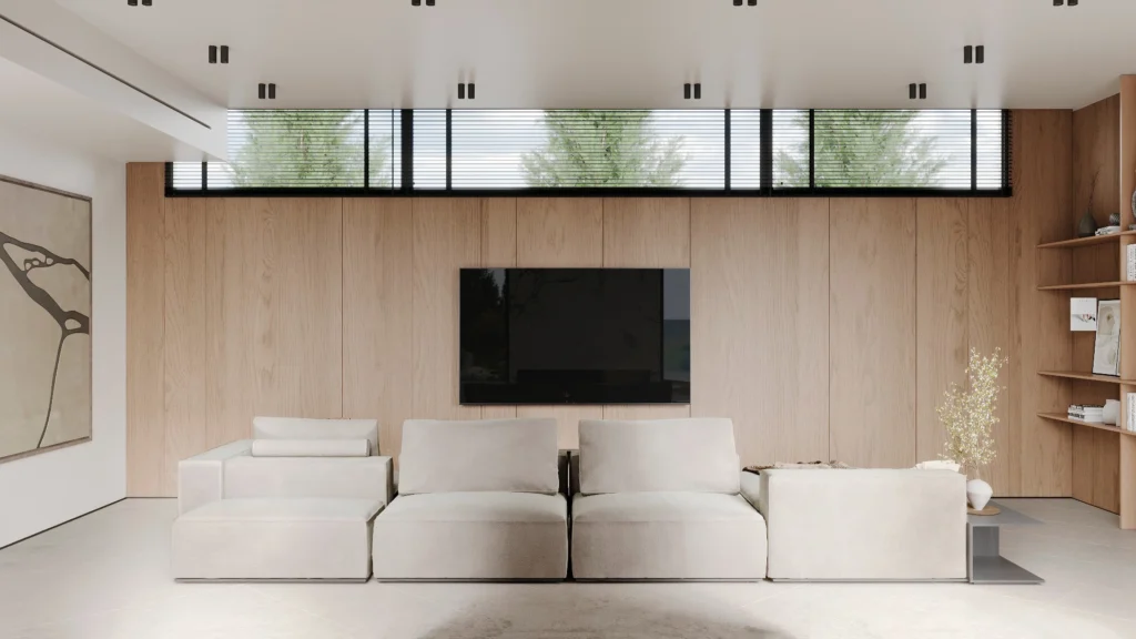 The villa is designed with energy-efficient systems, including underfloor heating and solar-ready infrastructure. It also has smart home automation for optimal energy use.