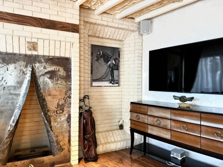 Elegant 2-storey house in a prestigious beachfront complex, boasting 210 m² of stylish living space on a 90 m² plot, with a 10 m² balcony offering sea glimpses.