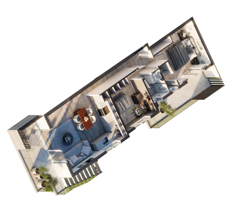 Two-bedroom apartment for sale in a new residential complex located in Aradippou, Larnaca. Each apartment has a covered parking space, special places for charging electric vehicles, as well as a storage room. The design and technical characteristics of the apartments are aimed at creating a cozy and comfortable home. The complex also offers a number of modern solutions, including air conditioning, photovoltaic systems, electric shutters, underfloor heating.The complex has a convenient location, as all necessary amenities, including a supermarket, pharmacy, cafe and bakery, are within walking distance. The beach is only 7 minutes away by car, and the Larnaca Mall is 10 minutes away. Finikoudes Embankment and Ermou Square can be reached in less than 15 minutes, and e Larnaca Marina can be reached in just 15 minutes. Larnaca International Airport is less than a 20-minute drive away. Prestigious educational institutions such as the American Academy and Med High British University are also within 10 minutes by car.