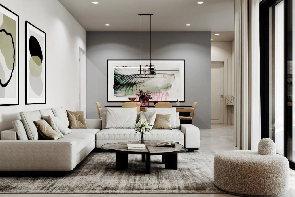 • Kitchens, toilets, and corridors ceilings decorated with gypsum boards with built-in spotlights.