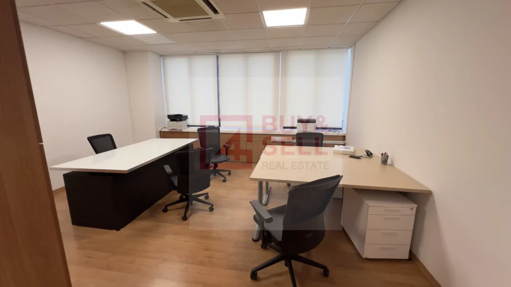 This professional-grade commercial office is ideally located in the Lycabettus area of Nicosia, right on Kennedy Avenue—offering high visibility and convenience in one of the city’s most prestigious business zones. Covering 75 square meters of internal space, the office is housed in a modern building constructed in 2003 and is designed to accommodate a range of business needs. The layout includes multiple office rooms, a welcoming reception area, and supporting facilities such as a private storage room. The building is equipped with an elevator, concierge services, and CCTV for round-the-clock security. Two private parking spaces are included in the basement—an exceptional asset for any office in central Nicosia. The property is available for both sale and rent, with flexible options for furnished or unfurnished use, making it move-in ready or fully customizable for your brand and team.