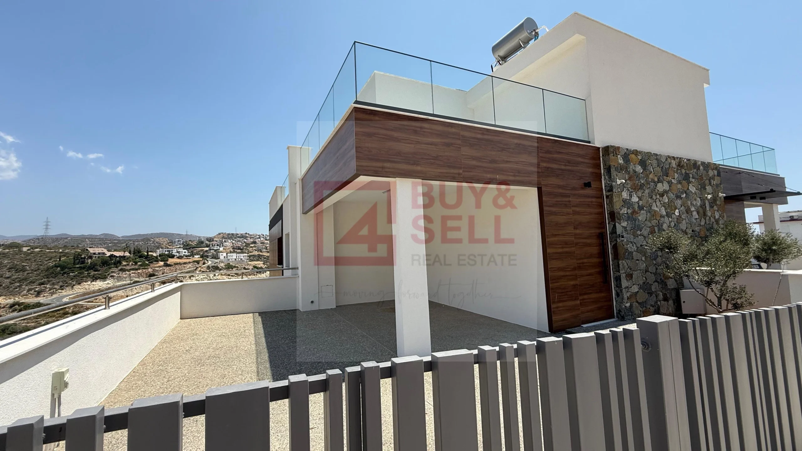 • Exterior Cladding: HPL panels & authentic Troodos stone
