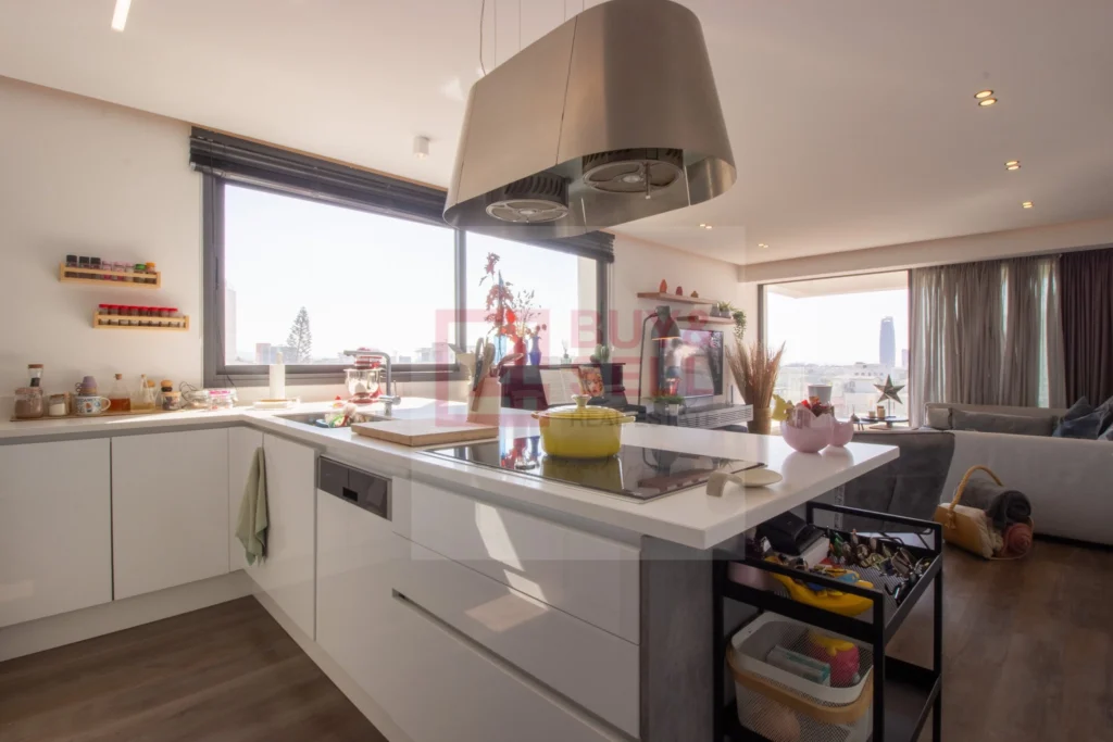 Modern and airy two bedroom penthouse, located in a prime area of Mesa Geitonia, offering comfortable indoor living and exceptional outdoor spaces. This beautiful apartment offers amazing sea views and the city at your feet, providing a perfect blend of comfort, convenience, and stunning scenery.