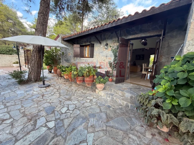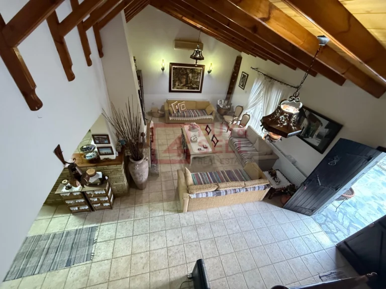 Inside, the villa offers a cozy living room with fireplace, central heating, air conditioning in all rooms (Mitsubishi Heavy Industries), modern bathrooms, and a fully equipped kitchen. With a total covered area of 205 m² across 2 floors and a 340 m² plot, this property ensures both comfort and functionality.
