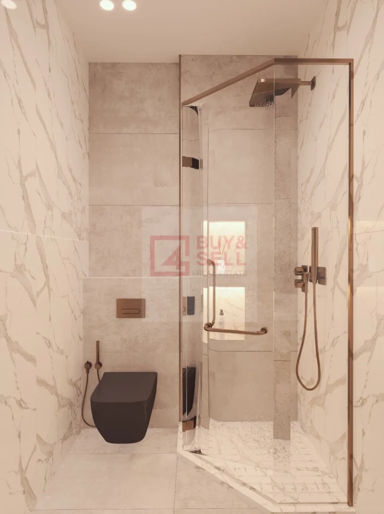 Premium finishes throughout: large-format tiles (120×60), European sanitary ware, Italian kitchen and wardrobes, underfloor water heating, and wall-mounted A/C units in all rooms. All materials are sourced from Europe, with the developer placing particular emphasis on top-quality construction and durable finishes. Thermal insulated walls and aluminium frames with double glazing ensure high energy efficiency.