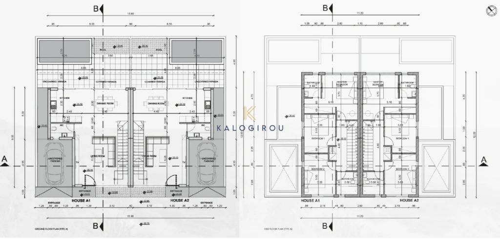 Semi Detached, Three Bedroom House for Sale in Pervolia area, Larnaca. Pervolia area combines traditional Cypriot character with modern amenities. The project is situated 600 meters from the beach and wiithin a very short distance from Larnaca Airport.