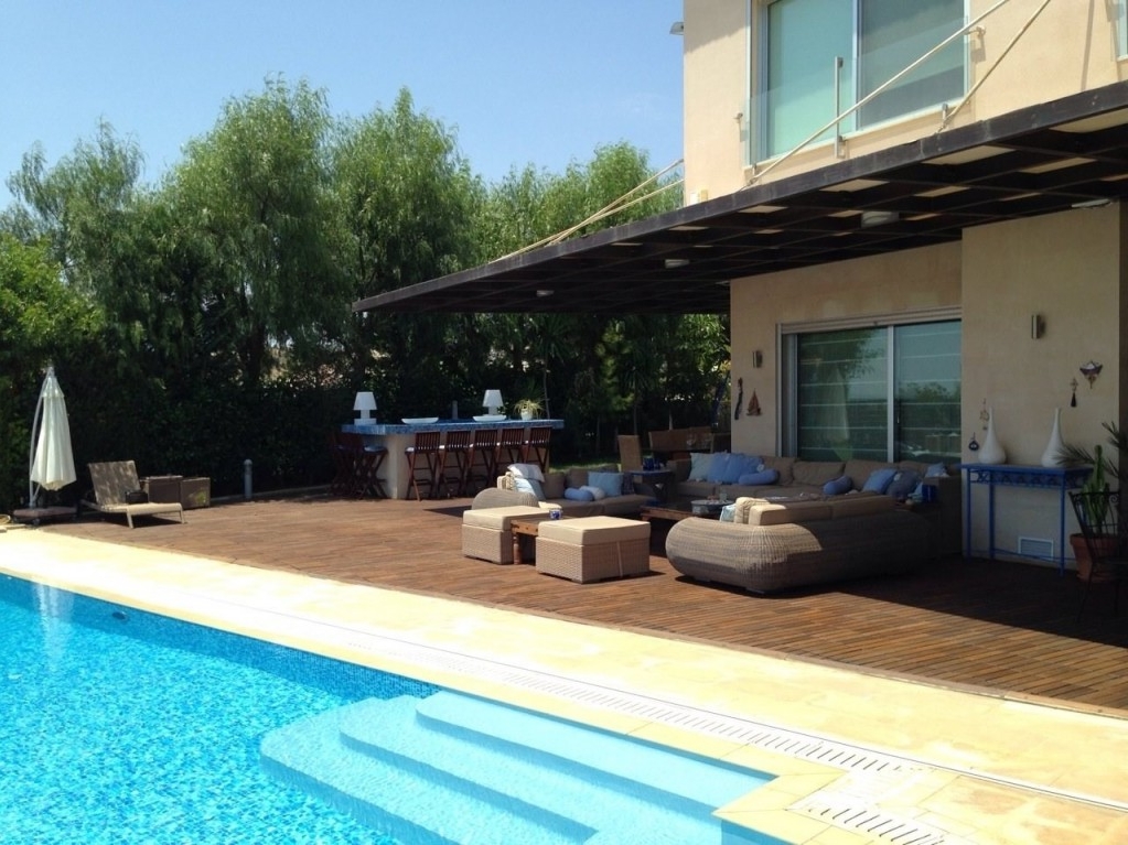 Reference ID: #7573Price details: €4,100,000The plot size is around 875sqm, the house is total of 310sqm plus basement of around 100sqm.In the 1st Floor there are 3 bedrooms with their own toilets an office and small Kitchener. In the basement there is another room with toilet, extra salon and kitchen, storeroom.On the Ground Floor there is the main Salon, small seating room, dining room, and extra smaller salon that can be turned into an office and the kitchen.There are two bars, one in the salon and the other in the garden. Swimming pool 15x4m overflow with electric cover. Under floor heating with a boiler.The house has been Thermally insulated both on walls and roof. There are electric shatters installed in rooms and salon.