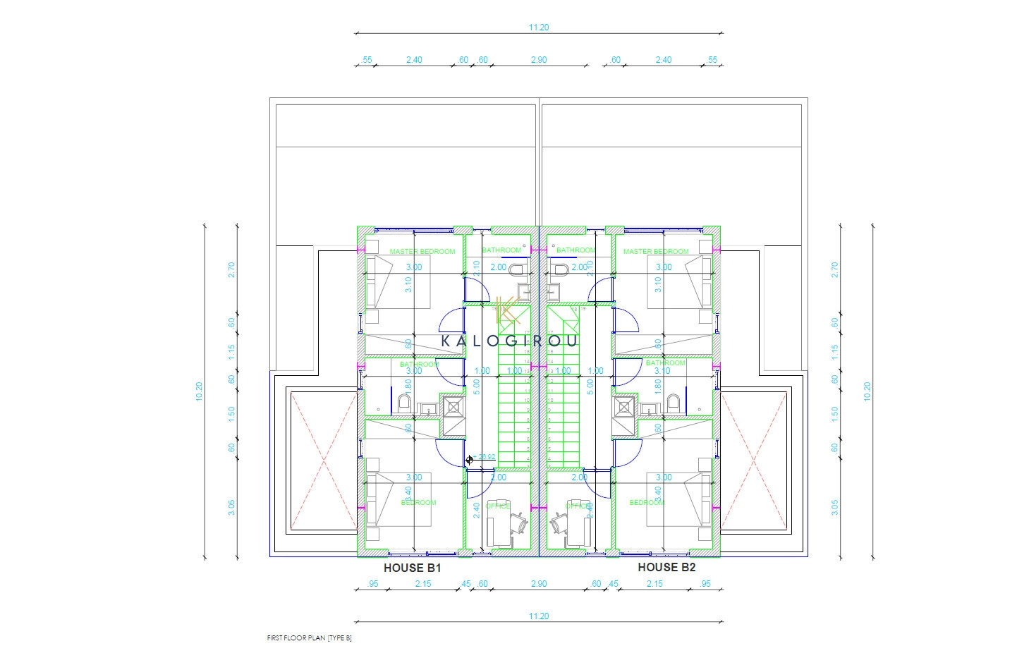 Semi-Detached house for sale in Larnaca, Pervolia area. The house occupies two floors-ground & and first floor. The ground floor consists of an open plan kitchen, living, dining area, guest toilet and uncovered veranda. The first floor consists of two bedrooms- master bedroom is en suite with shower with wc, a main bathroom and a third, smaller room which can be used as an office. Externally there is a yard and parking space