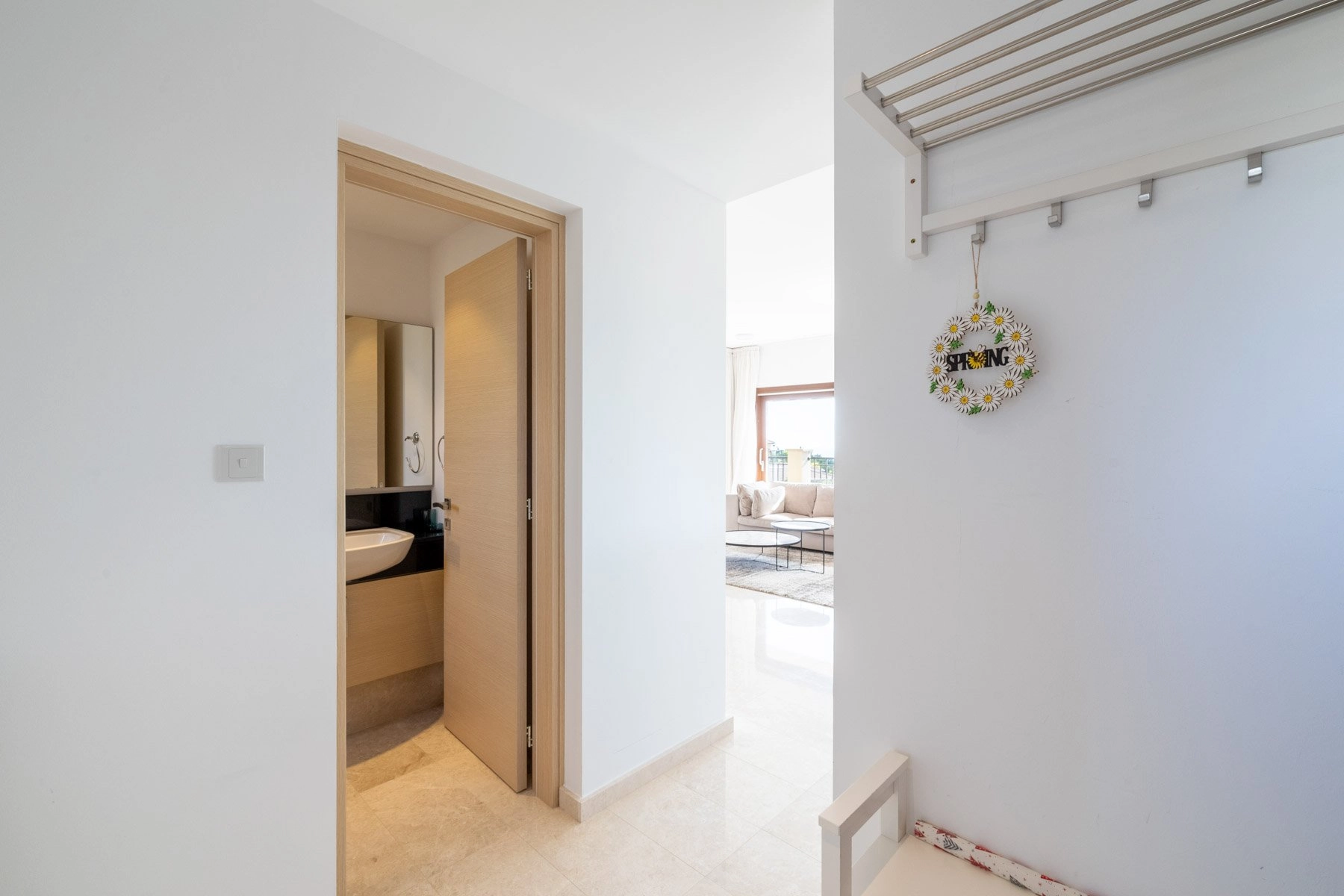 Set in a charming low-rise development, the apartment features a bright and spacious living room with panoramic windows along two walls, opening onto a private veranda with captivating sea views. The separate kitchen is fully fitted with high-quality appliances, combining functionality and contemporary design.