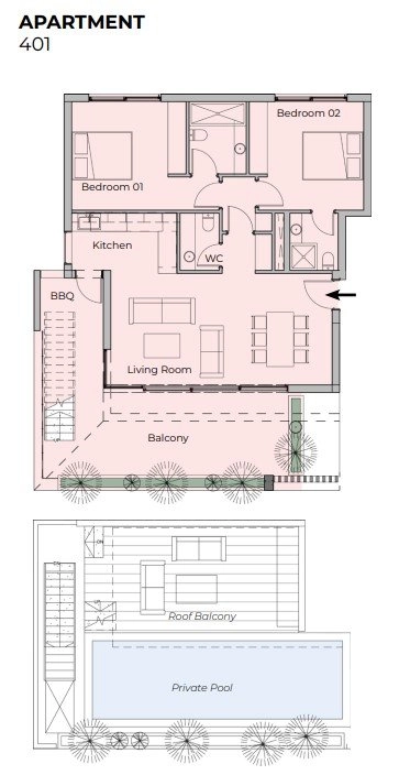 The spacious open-plan living area flows seamlessly into the dining space and kitchen, with access to an expansive balcony—ideal for entertaining guests or enjoying unobstructed city and sea views. The master bedroom includes a private en-suite bathroom and ample wardrobe space, creating a calm, self-contained sanctuary. The second bedroom can serve as a guest room, children’s room, or a home office.