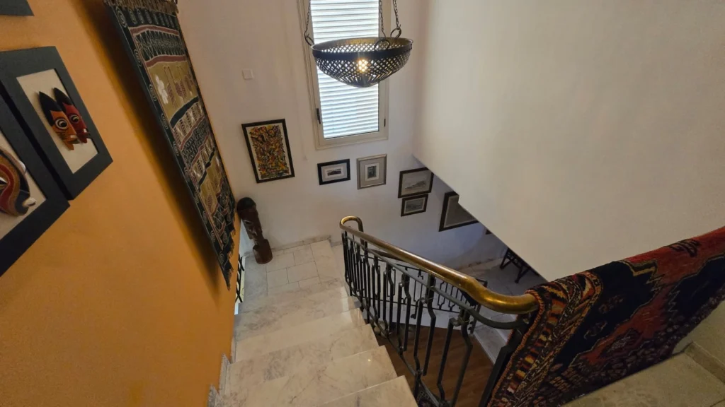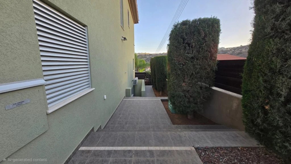 Set across two adjacent plots totaling 1,125 m², this five-bedroom villa in Germasogeia benefits from a pedestrian way on one side and roads at the top and bottom, offering privacy from three sides and practical access from two roads.