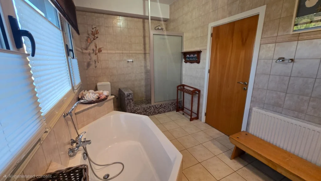 In the basement there is a maid’s room with shower and WC, plus a separate room that was intended as a sauna and is currently used as storage/art workshop; it can be reverted to a sauna with minimal work.