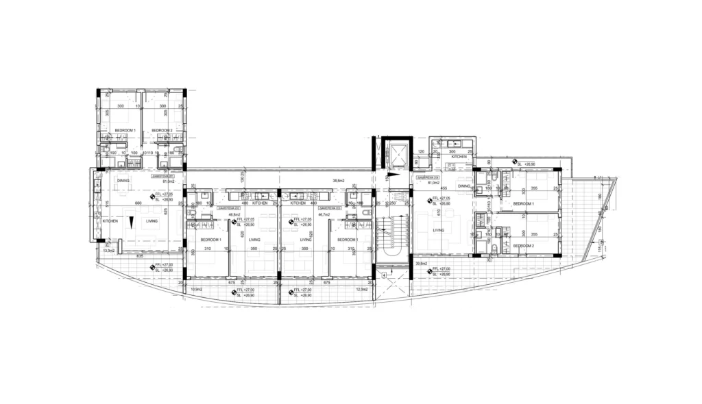 Modern one-bedroom apartment on the second floor of a stylish residential building, located on Dhekelia Road, Larnaca — just 300 meters from a Blue Flag beach. The apartment features a bright open-plan layout, contemporary finishes, and private covered parking.