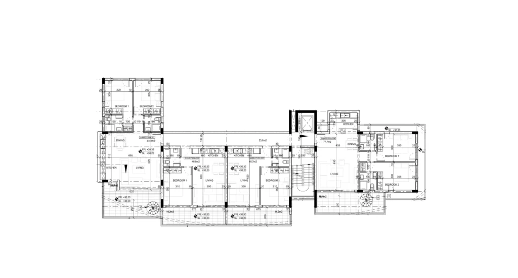 Modern one-bedroom apartment on the third floor of a stylish residential building, located on Dhekelia Road, Larnaca — just 300 meters from a Blue Flag beach. The apartment features a bright open-plan layout, contemporary finishes, and private covered parking.