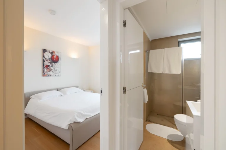Residents have access to exclusive on-site facilities, including a swimming pool, fitness and wellness areas, a private pedestrian bridge leading directly to the beach, and a landscaped courtyard with a café and boutique shops.