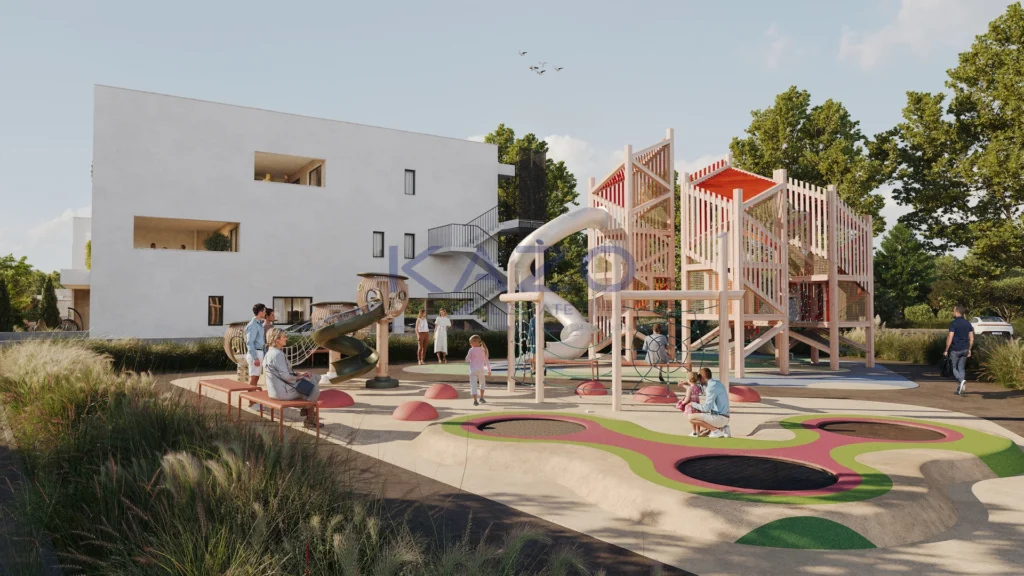 For sale off plan, this modern ground-floor apartment offers comfortable living with 90 m² of internal space. The property features two well-sized bedrooms and is designed with a focus on energy efficiency, boasting an A+ rating. Construction will be completed in 2027, with high-quality finishes throughout. Residents will enjoy access to a communal swimming pool and a well-equipped gym, perfect for an active lifestyle.