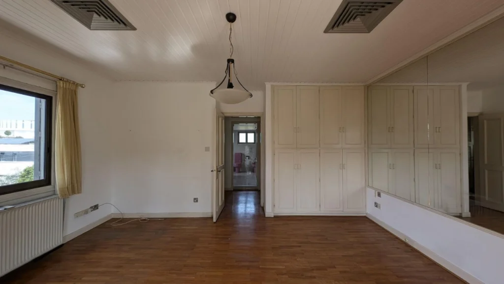 A three bedroom house for sale in Aglantzia area, Nicosia.The ground floor of the house comprises of a living room, bar, open plan dining-sitting area, kitchen, and a guests’ toilet and a storage area.