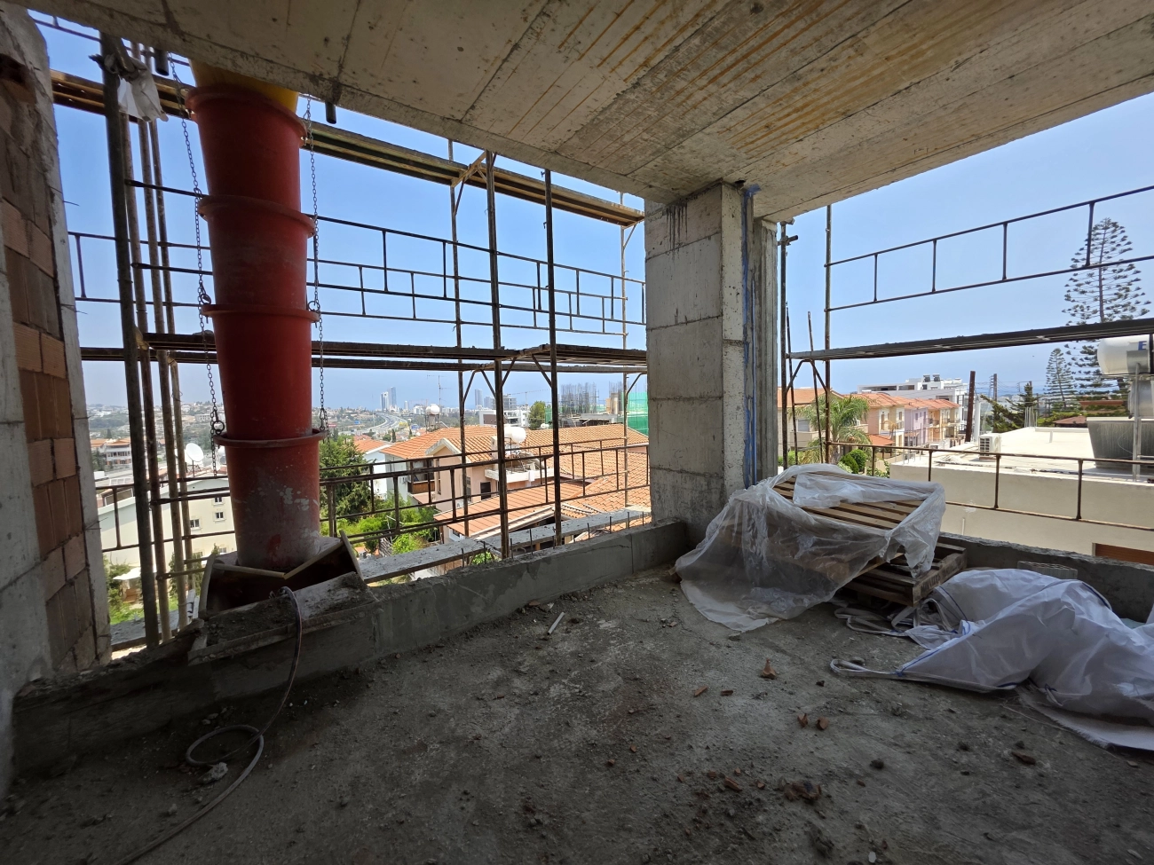 Two-bedroom penthouse for sale in Germasogeia Columbia, Limassol. The project consists of 3 floors, with 2 apartments on each floor. Easy access to the highway and the city center. The apartment has an open-plan kitchen with a living room and a spacious covered veranda, 2 bedrooms, 2 bathrooms + a guest toilet. On the ground floor there is a covered parking and storage rooms for all apartments.