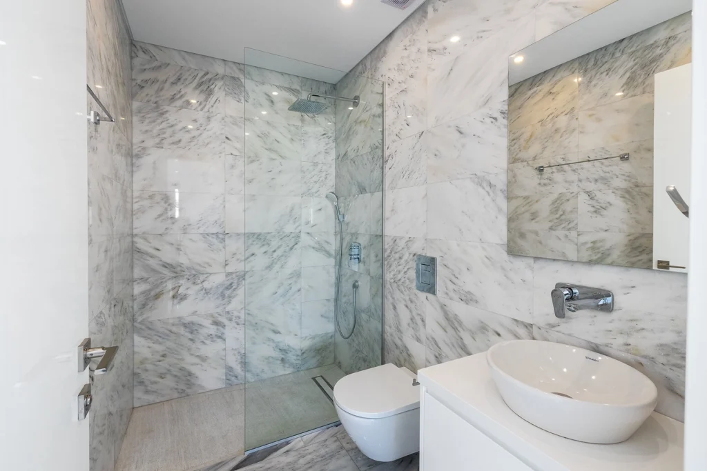 The development fosters a sense of community with a generously sized communal pool, complete with amenities like toilets, showers and changing rooms. Cutting-edge technology enhances the living experience, featuring smart home systems, VRV systems, and underfloor heating, as well as thermal aluminum windows, marble floors, and marble-tiled bathrooms. Security is paramount, with a functional CCTV system safeguarding the premises. Each apartment comes with dedicated parking, providing convenience and peace of mind for residents.