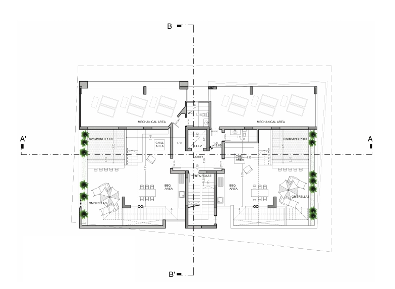 Sale of 2 bedrooms penthouse with roof garden and pool in Agios Athanasios area, Limassol. The apartment is situated in 3 storey building with 6 deluxe apartments. For each apartment has a covered parking space and storage room at the ground floor.