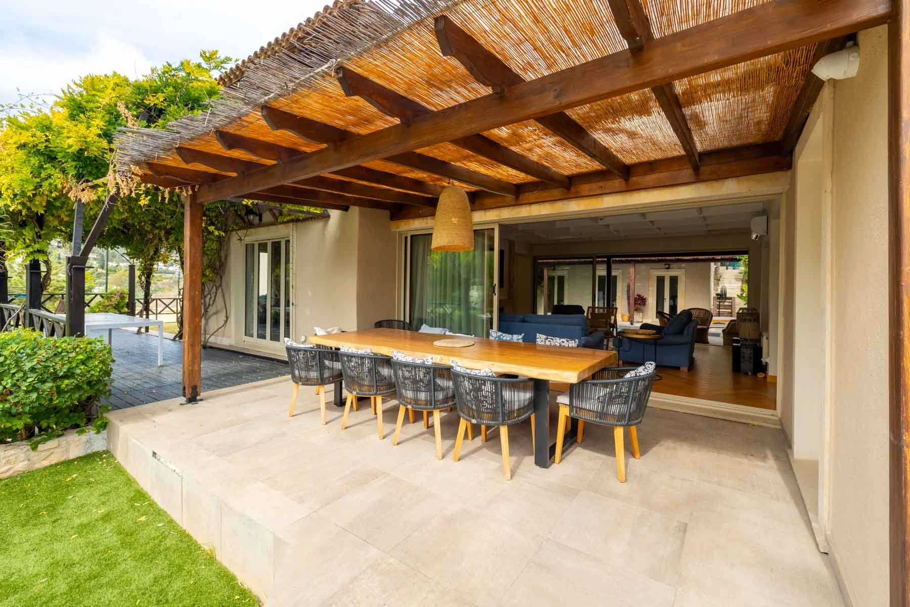Set on nearly 5,000 m² of landscaped grounds, this distinguished Mediterranean villa captures the essence of refined living and architectural harmony. Terracotta rooftops, arched verandas, and natural stone details blend seamlessly with the surrounding hills, creating a sanctuary of elegance and serenity. Inside, sunlight enhances the warmth of oak floors, handcrafted woodwork, and soft neutral tones. The villa offers five luxurious en-suite bedrooms, a flexible office or sixth suite, and a discreet staff apartment for effortless living. Expansive lounges with grand fireplaces open toward the home’s central masterpiece — a tranquil pool courtyard that forms the heart of the residence, uniting all main living areas with a sense of calm and continuity. The inviting country-style kitchen, elegant dining area, and private wine cellar provide an atmosphere ideal for family moments and entertaining. Leisure and wellness are thoughtfully integrated with a gym, sauna, jacuzzi, library and games lounge. Beyond the courtyard, a tennis and basketball court offer active recreation. Solar panels, EV charging, and advanced security ensure a lifestyle where sustainability meets timeless Mediterranean sophistication.