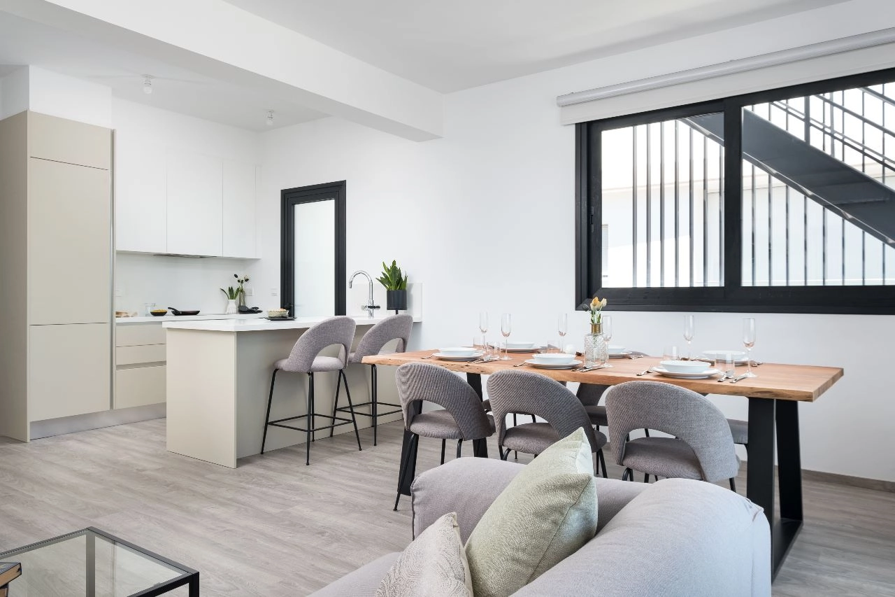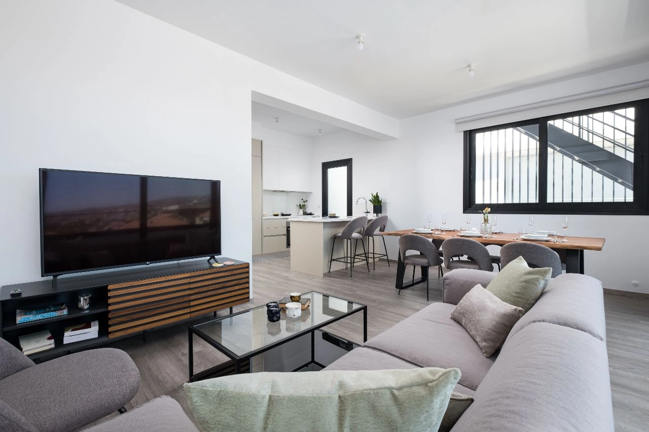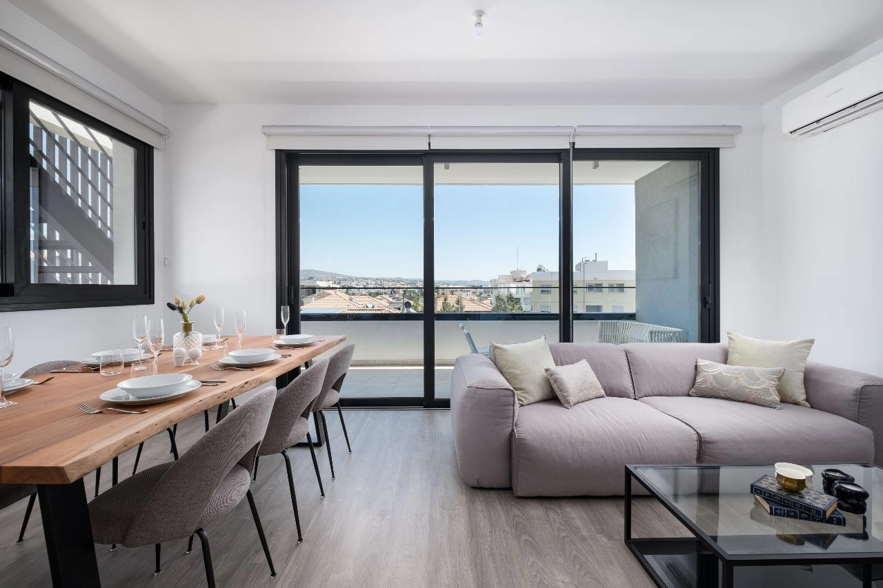 A 2-bedroom penthouse for sale with a modern interior in excellent condition, located in Limassol. The apartment has an area of 77 m², with a 10 m² balcony. It is situated on the 3rd floor and includes two bathrooms: one with a bathtub and the other with a shower. Additionally, there is parking with one space under the building and a storage room. The interior is fully furnished and designed in a contemporary style. An ideal option for comfortable living.