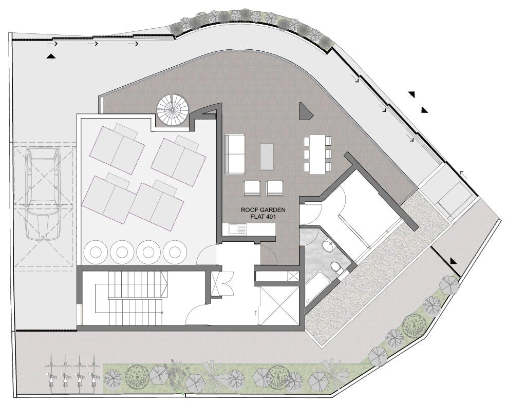 The building offers spacious 2- and 3-bedroom apartments, including a premium 3-bedroom penthouse with a private roof garden—perfect for those seeking refined city living with generous outdoor space. The roof garden is designed for seamless indoor-outdoor living, providing an ideal setting for family gatherings, entertaining, or quiet relaxation. It can be customized with options such as a BBQ area, kitchenette, and WC, offering both comfort and practicality.