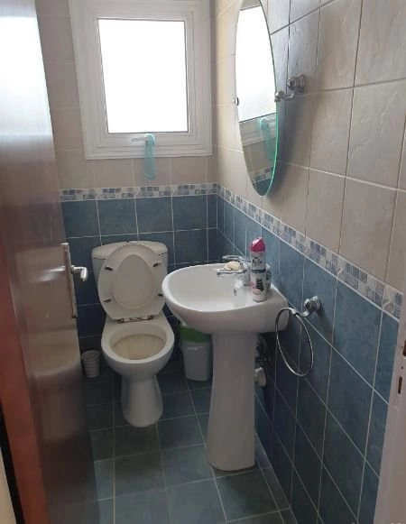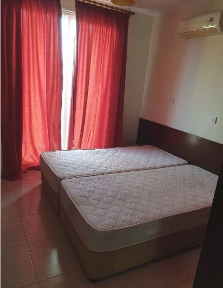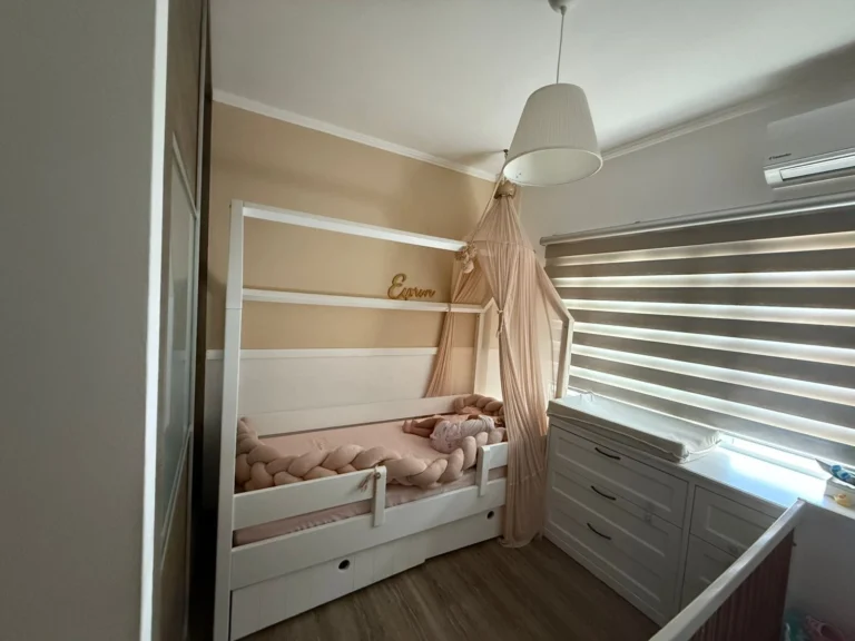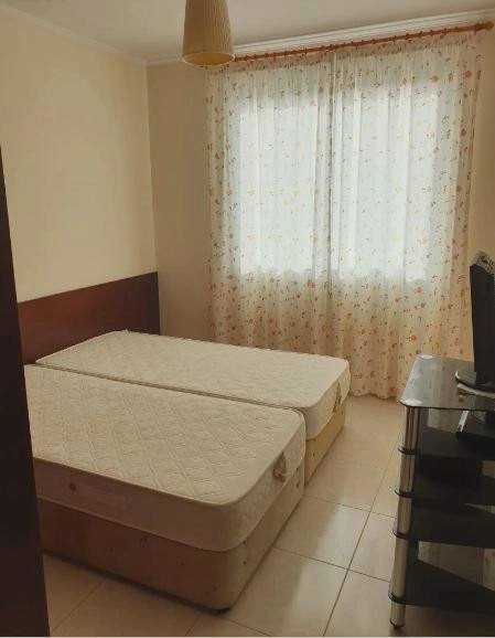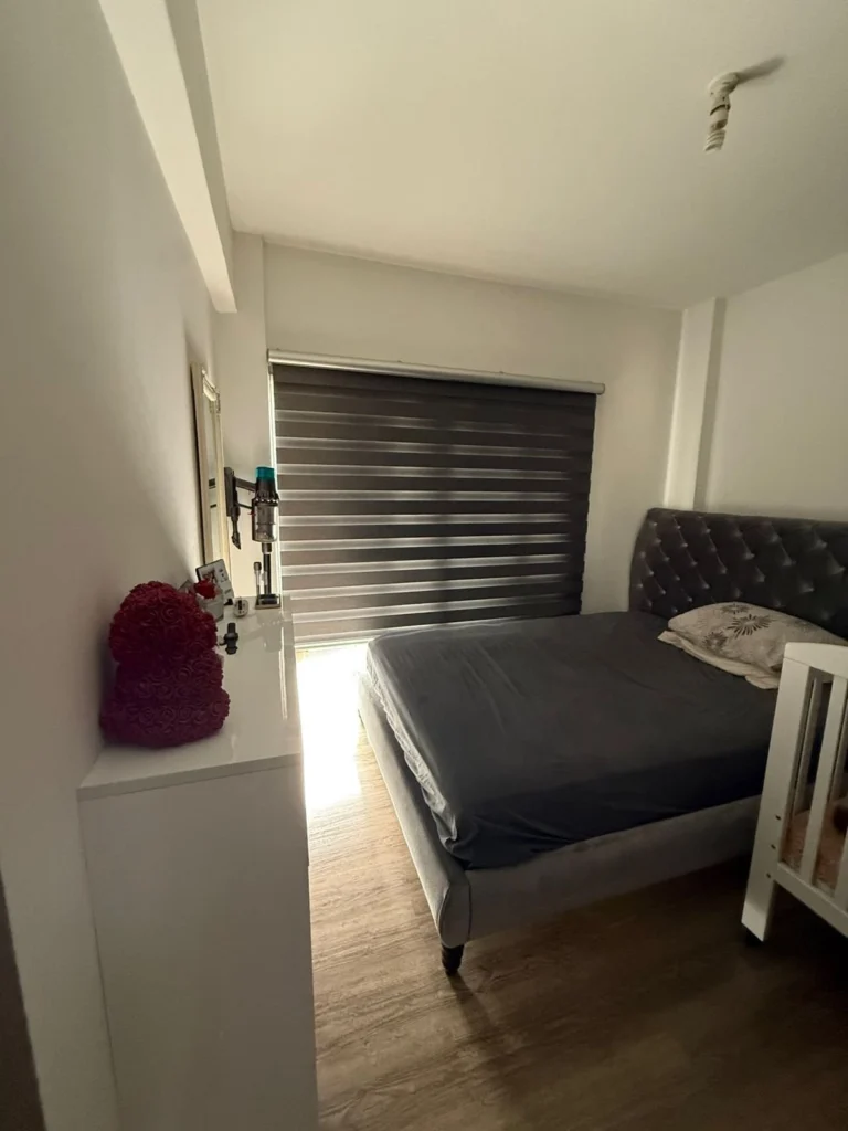 The apartment features two well-sized bedrooms and one contemporary bathroom, ideal for small families, couples, or individuals looking for extra space.