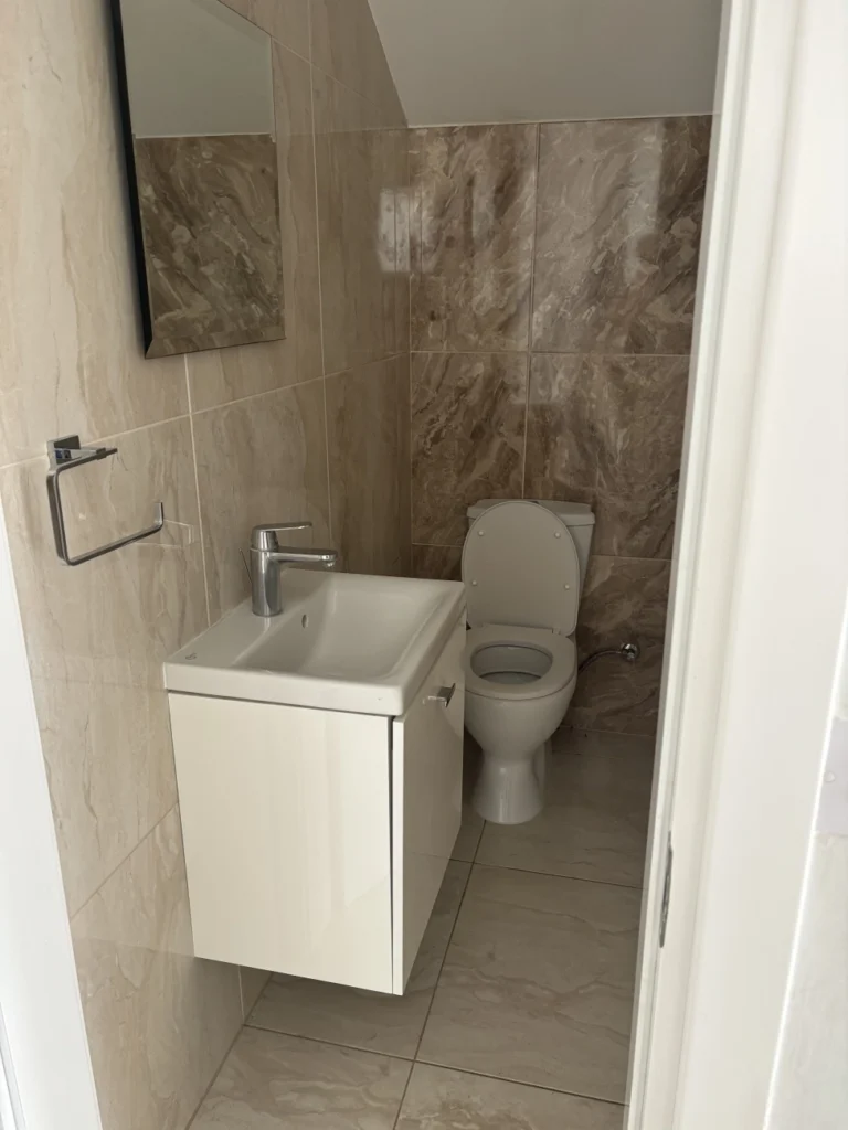 ✔ Ground floor: open-plan living and dining area with a fully equipped kitchen, guest toilet, direct access to the garden yard, and a secondary entrance.