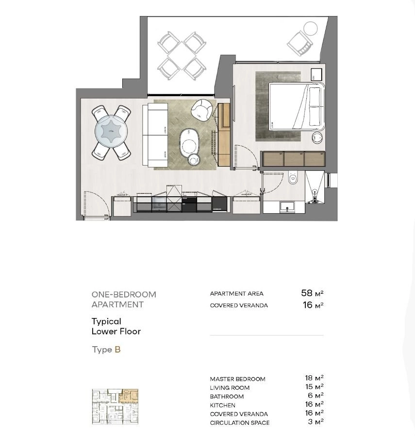 The complex maintains a gym, adults & kids pools, private playground area, and other services for an inspiring living. It is a real urban oasis with a BBQ zone and lounge areas.