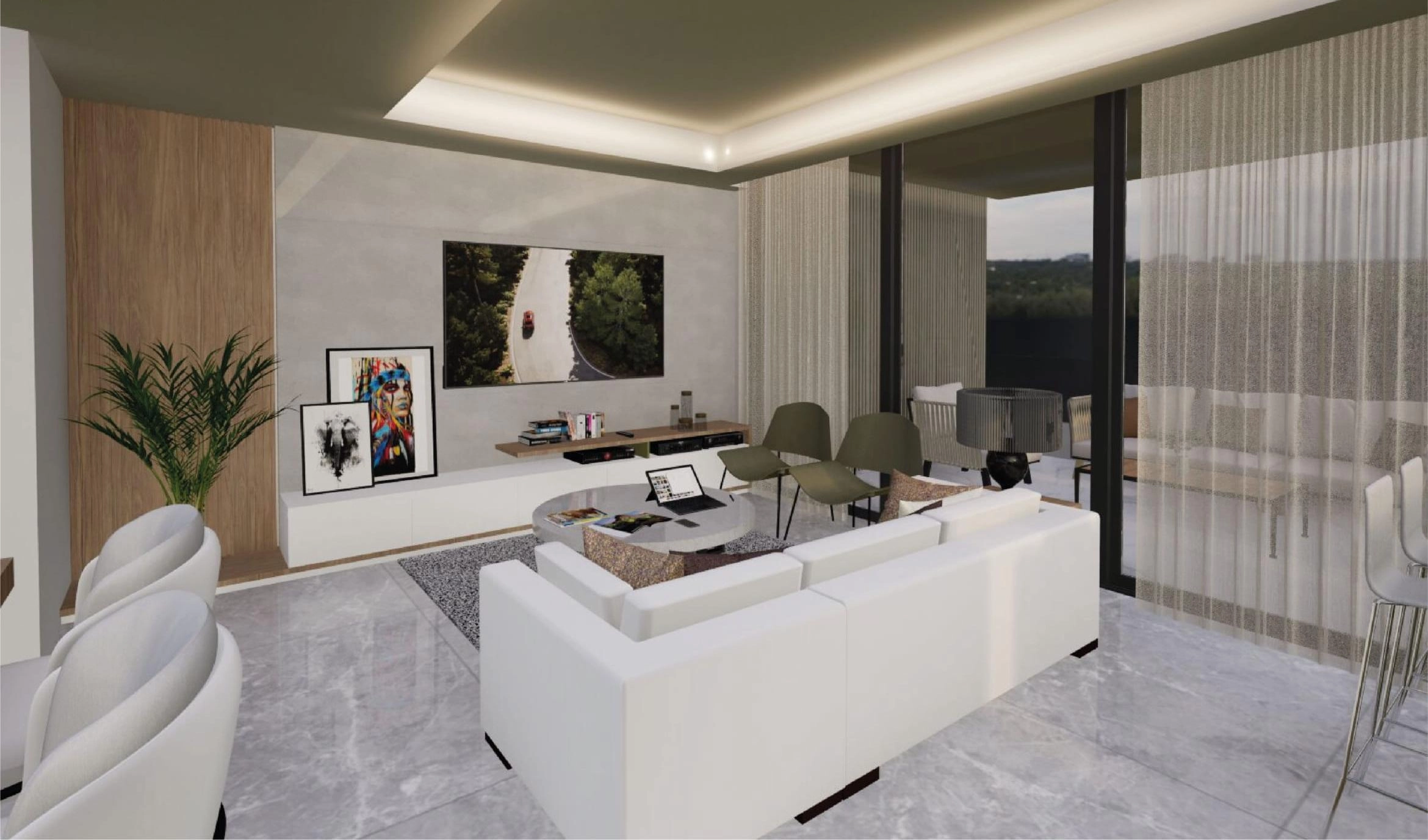 Penthouse for sale with a roof terrace in a new residential complex in Germasogeia, Limassol. The project features six modern apartments. All bedrooms have private bathrooms and large closets, and the apartment also has a guest toilet. The kitchen has outdoor ventilation.The living rooms in the complex are oriented to the south facing the sea and the park, the bedrooms to the west and east. The price includes underfloor heating, VRV air conditioning in the living rooms and split systems in the bedrooms, electric roller shutters on the windows. It is possible to install charging for an electric car and heated towel rails. The plumbing is flush-mounted, a hot water recirculation pump and a smart switch for the water heater are installed. A photovoltaic system is also provided for common areas.The project is located in a quiet location, next to a landscaped park area. The complex is equipped with an outdoor video surveillance system. It is ideally located for easy access to the city center and Limassol highway. Germasogeia is one of the most sought—after areas of the city: its peaceful atmosphere, proximity to the sea, shops and schools make it an ideal place to live and invest.