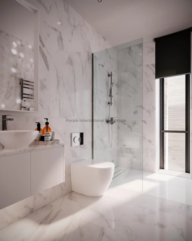 For sale is a modern apartment under construction, offering 88 square meters of comfortable living space. This well-designed home features two spacious bedrooms and two stylish bathrooms, ideal for small families or professionals seeking extra room. The apartment is located in a secure, gated complex with an elevator for easy access and a communal swimming pool for residents to enjoy.