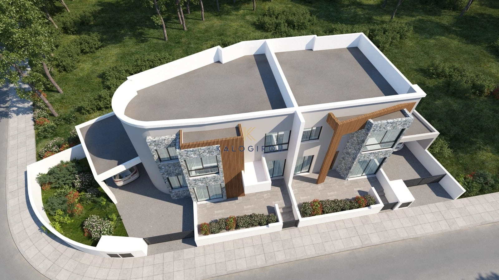 Under Constriction, Semi-Detached House for Sale in Ormideia, Larnaca. The house comprises of an open plan space of living room, sitting & dining area, kitchen and guest toilet on the ground floor. The first floor consists of three bedrooms, the master bedroom has en suite shower with wc and a main bathroom with wc. Externally, there is a private space of yard area and a covered parking.