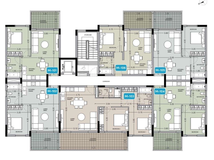 Comprising twenty-four contemporary buildings, the project offers a diverse selection of studios and one- and two-bedroom apartments, each thoughtfully planned to maximize light, space, and functionality. Clean lines, elegant materials, and panoramic windows frame views of the surrounding hills and gardens, blurring the boundary between indoor and outdoor life.