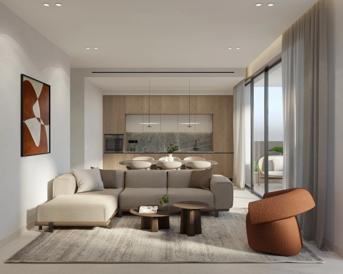 Stylish 2-bedroom apartment in a new development of 16 residences, ideally located in the vibrant Eleftherias Street area — just minutes from Limassol Marina. The building’s modern architecture, high ceilings, and floor-to-ceiling windows create a bright, elegant living space filled with natural light.