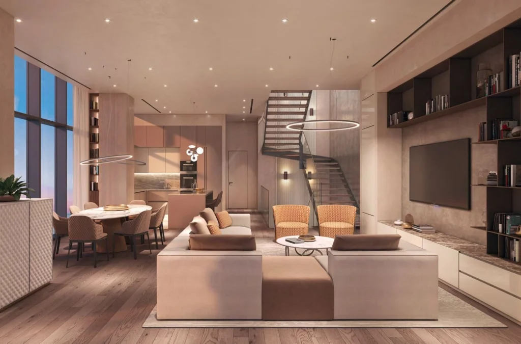 Four-bedroom penthouse 2301, with a internal area of 284 m² and roof garden, is located on the twenty-third floor of a twenty-five-storey building.