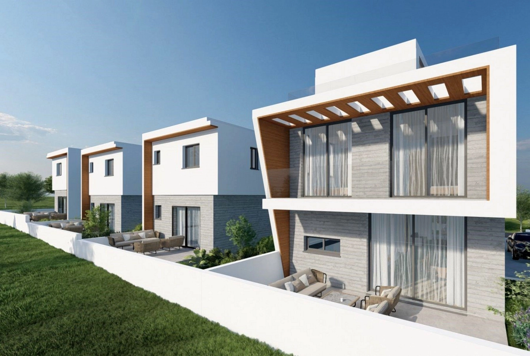 Every villa is carefully crafted with modern finishes and thoughtful details: walk-in showers that add a touch of elegance, wall-mounted sanitary ware for a clean architectural feel, and thermal insulation that enhances comfort throughout the year. The semi-covered parking area includes preparation for an electric car, while Energy Class A construction ensures long-term efficiency.