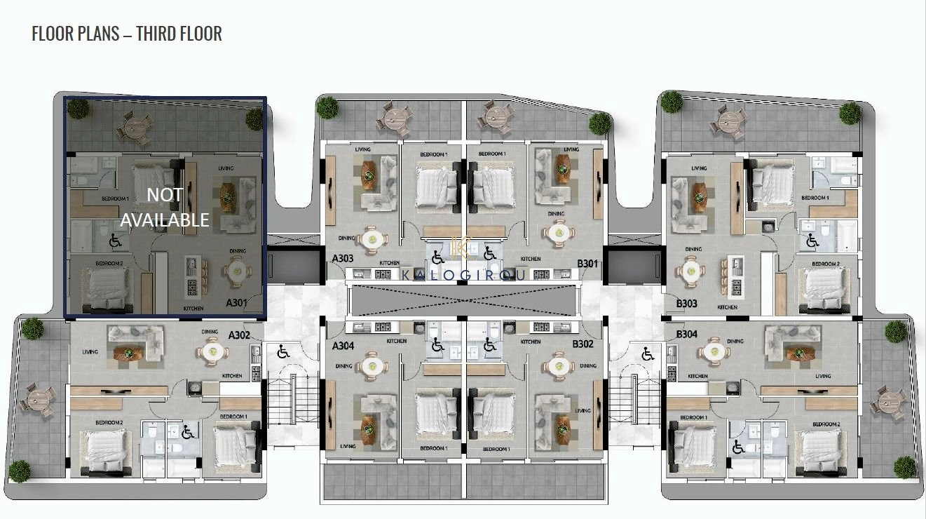 Third floor apartment for sale in Livadia area, in Larnaca. The apartment consists of an open plan kitchen, living-dining area, a main bathroom with shower and wc, two bedrooms, one is en suite and a spacious covered veranda. The property offers also an exclusive right of use of a covered parking spot and storage room on the ground floor.