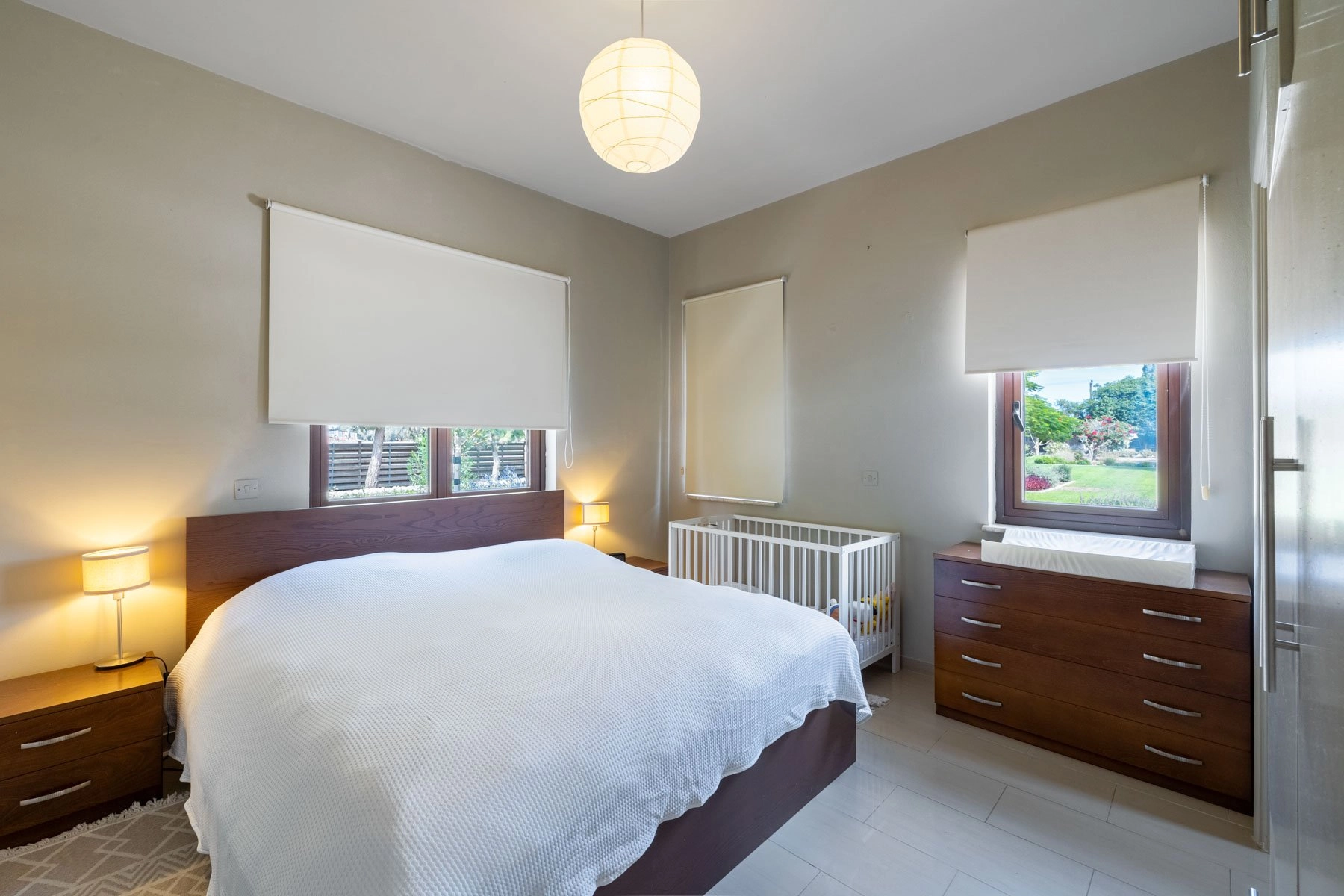 The property combines modern elegance with Mediterranean charm and includes two attached villas along with a separate one-bedroom guest house. The main villa boasts bright, open-plan interiors with large windows that fill the space with natural light. A contemporary kitchen flows seamlessly into the dining and living areas, all opening out to the garden. On the upper level, each bedroom features its own en-suite bathroom and built-in wardrobes, providing privacy and comfort.