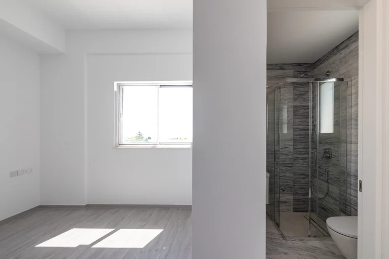 Apartment 108 is part of a prestigious hilltop resort development in Chloraka, Paphos. The resort offers modern Mediterranean-style architecture with natural stone, earthy tones, wood details, and tiled roofs.