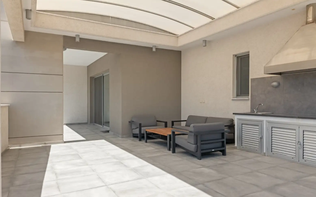Modern and elegant whole floor penthouse located in a quiet residential area of Germasogia Tourist Area, within walking distance from the sea. Set in a small building of just 5 apartments, it offers privacy, comfort and modern quality living.