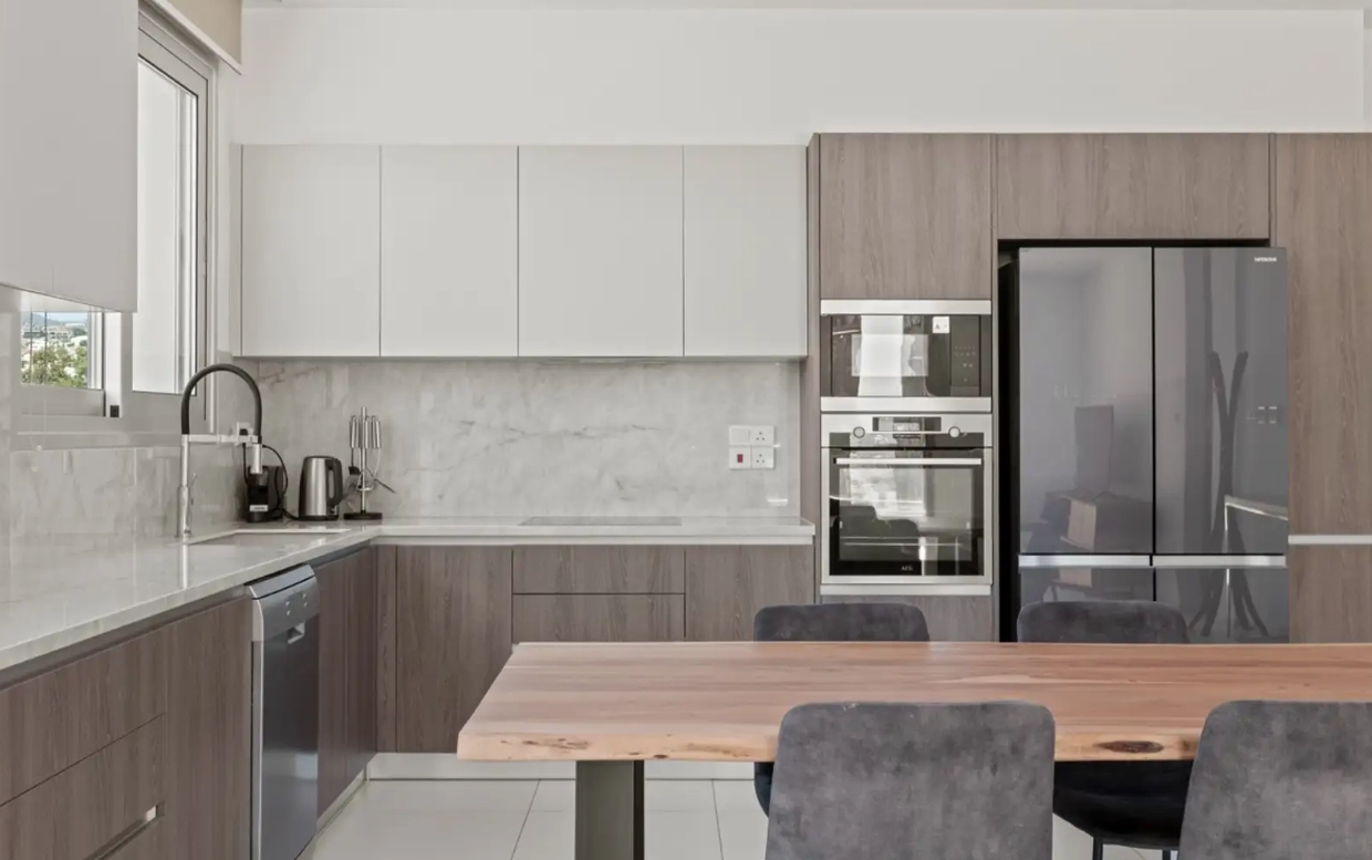 Spacious open plan living, dining and kitchen areas open onto a large veranda with a BBQ space, perfect for entertaining or relaxing. The penthouse is offered equipped with appliances and furniture, featuring quality finishes throughout.