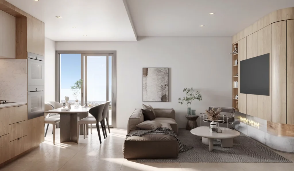 These apartments are crafted with modern, minimalistic design principles, featuring high-quality materials, stylish sanitary ware, and spacious wardrobes.