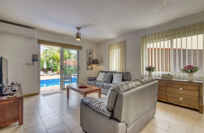 Three Bedroom Detached Villa for Sale in Pernera with Title Deeds Available This outstanding three bedroom detached villa, with title deeds available, is superbly positioned within easy walking distance of Pernera’s thriving resort centre, stunning beaches, the newly developed marina, and an excellent selection of restaurants, bars, and local amenities. Properties in such highly sought after locations are rarely available, making this an exceptional opportunity. Beautifully cared for by the current owners, the villa offers a stylish and inviting interior with a well planned layout ideal for modern coastal living. The ground floor features a bright open-plan living and dining area, complemented by a large bay window that fills the space with natural light. The modern, fully fitted kitchen is both practical and elegant, while patio doors with fly screens lead to a partially covered terrace perfect for alfresco dining or unwinding in the shade. A convenient guest WC completes this level. On the first floor, there are three generously sized double bedrooms. The master boasts a contemporary ensuite with walk in shower and access to a private balcony offering picturesque views of the pool and coastline. The second bedroom features an attractive bow window, and the third benefits from its own private balcony. All bedrooms include floor-to-ceiling fitted wardrobes and are served by a stylish family bathroom with walk in shower. The exterior of the property is equally impressive. The beautifully landscaped garden features mature plants and fruit trees, creating a tranquil and private escape. The heated swimming pool ensures year round use, and the multiple seating areas provide an idyllic setting for hosting guests, sunbathing, or simply relaxing outdoors. A covered pergola with power supply is ideal for outdoor entertaining, while a shaded AstroTurf seating area with ambient lighting adds the perfect touch for evening enjoyment. The villa also benefits from a range of additional upgrades, including a gas central heating system, new inverter air conditioning units, ceiling fans, fly screens, garden irrigation and feature lighting, outdoor tiled shower, outdoor Bluetooth speakers, and private gated parking. The property is being sold furnished and is fully key ready for immediate occupancy. Whether you are looking for a permanent coastal residence or a high-yield investment with proven rental potential, this exceptional villa ticks all the boxes. Viewing is highly recommended for those seeking a quality home in one of Cyprus’s most desirable locations. - Master Double bedroom with Ensuite facilities and fitted wardrobes - Two Double bedrooms with fitted wardrobes - Open plan Lounge Dining area - Fully Fitted Kitchen - Guest WC - Family Bathroom - Air Conditioning throughout (installed 2024) - Gas Central Heating System - Ceiling Fans - Heated Pool - Gated Driveway parking - Furnished - Outdoor Shower - Communal Fees 325 p/a - Internal 124 m2 - Plot 250 m2 approx. - Balconies 12 m2 - Energy Efficiency TBC - Suitable for Cyprus Permanent Residency - 3 Minutes to local shops and amenities - 5 Minutes to sea and beach - 14 Minutes to Ayia Napa - 45 Minutes to Larnaca International Airport Pernera Pernera is a smaller tourist area linked by a beachfront walkway to the larger resort of Protaras. Here you will find smaller, secluded beaches including Sirena Bay and Louma Beach (known as the Golden Coast beach due to the hotel located there) and the Protaras Harbour – the site of the new Paralimni Marina. Pernera has several hotels to choose from and an abundance of holiday villas and apartments, making it a popular choice for families looking for a little more independence on their holiday. Many villa and apartment owners live a large part of the year here so there is life in the area all year round. Although considered a quieter resort, Pernera has a variety of gift shops, cafes, bars, restaurants and traditional tavernas to choose from with options to suit all tastes and budgets. ———— * Title Deeds Available * Private Swimming Pool * Excellent Holiday Rental Income * Suitable for Cyprus Permanent Residency * Air Conditioning * Resale * Energy Efficiency TBC Pernera Pernera 5295 County: Famagusta Sale Type: For Sale Ref #: EPCC5081