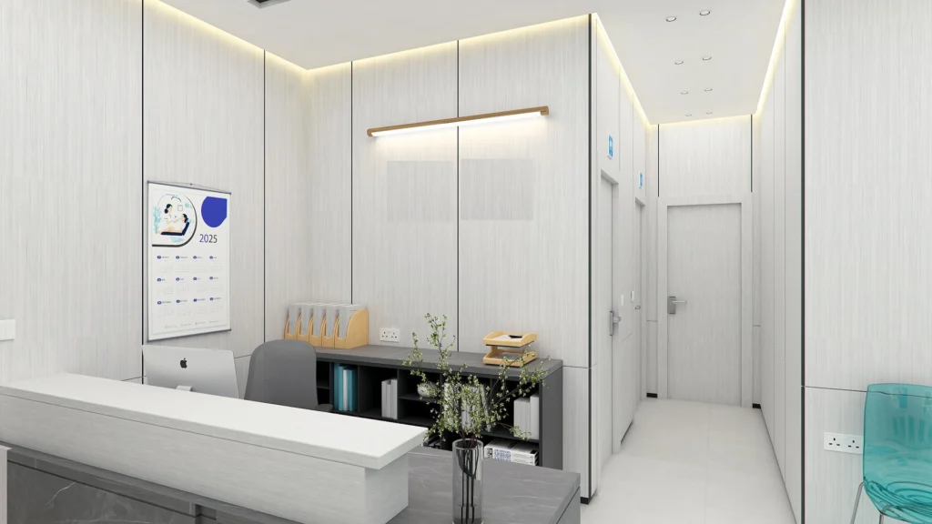 The building’s design allows for flexible configurations to suit a variety of practices, including specialized clinics, rehabilitation centers, and wellness facilities.