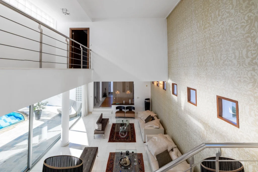 Set in the desirable residential area of Anavargos, this impressive modern residence offers a rare combination of space, privacy, and refined comfort just moments from the heart of Paphos. Positioned across two adjoining plots, the home benefits from a generous sense of openness rarely found so close to the city, while schools, supermarkets, and essential amenities remain within easy walking distance.