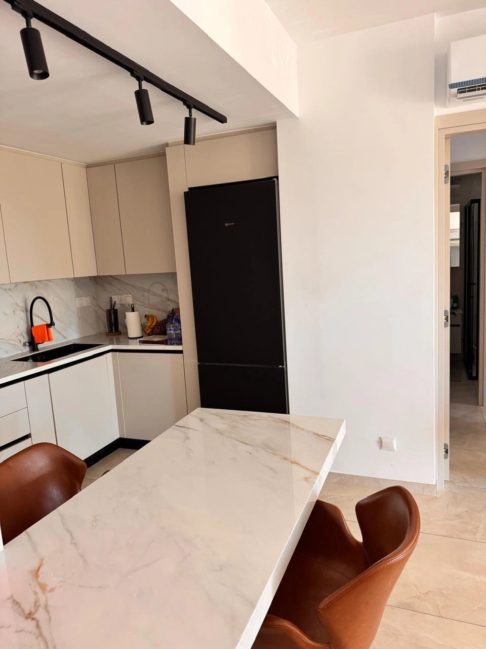An ideal ready-to-move-in furnished home in a prestigious new-build area. Set on the nearest hillside in Agios Athanasios, just 10 minutes’ drive from the city center. A quiet spot next to a green square/park, with all daily amenities at your doorstep. Highlights & Features: • Elevated 1st floor above the parking level • Wide views over Limassol and the sea; lovely terrace • Two separate, fully furnished bedrooms • Spacious open-plan kitchen & living; smart zoning (private & guest areas) • Interior designed; furnished with quality international brands • Brand-new Bosch appliances • Private photovoltaic (PV) system — significantly reduces electricity costs (comfortable use of A/C & heating) • Dedicated parking space with partial pergola cover (sun protection) • Ample built-in storage; premium sanitaryware • Walking distance to groceries, butcher, hair salon, pharmacies; quick access to main roundabouts