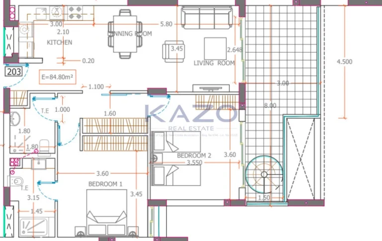 Apartment for sale in Kapparis area. The apartment is situated on the first floor and it consists of an open plan kitchen with living room and dining area, two bedrooms, en – suite shower with W/C in the master bedroom and one main shower with W/C.