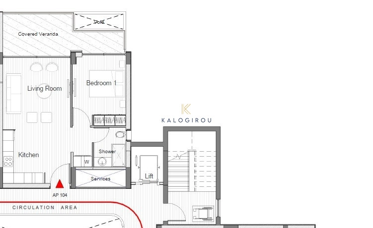 Apartment for sale in Kapparis area. The apartment is situated on the first floor and it consists of an open plan kitchen with living room and dining area, one bedroom and one main shower with W/C.