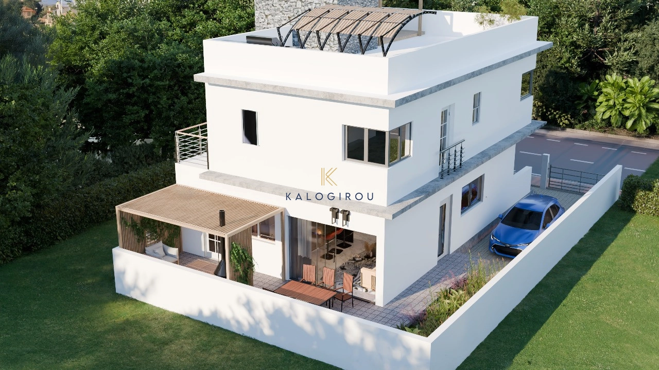 Double storey house for sale in Aradippou area, Larnaca. The ground floor consists of an open plan kitchen, living, dining area, kitchenette, guest wc and spacious veranda. The first floor consists of 3 bedrooms-en suite master bedroom & walk in closet, and a family bathroom. Moreover, there is a roof garden for additional relaxation and entertainment. The house has uncovered parking area.